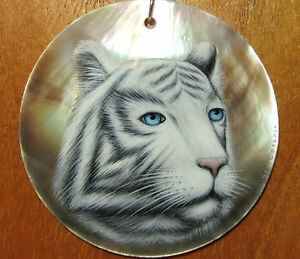 ciondolo bianco tigre siberiana shell originale russo dipinto a mano rotondo nero bordo a incastroペンダントホワイトシベリアンタイガーシェルロシアロックペイントブラックラウンドエッジ※注意※NYからの配送になりますので2週間前後お時間をいただきます。