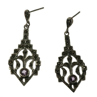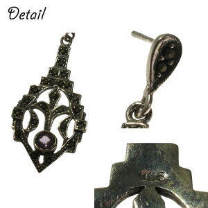 シルバーピアス 天然石 アメジスト マーカサイト マカサイトドロップ 雫 しずく型 エスニック ゴシック調 アラベスク シルバー925 silver925 シルバーアクセサリー スタッドピアス お守り mens