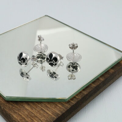 ◆素材:silver925(プラチナ仕上げ)、ブラック塗装 ◆サイズ:枠径約9mm ◆重量:片耳約1.19g ◆付属品:ロゴ入りジュエリーポーチかジュエリーBOXのどちらかに入れてお届けいたします。