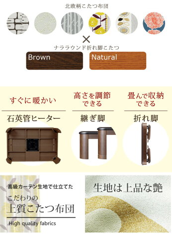 商品説明(spec等)商品詳細【セット構成】こたつ本体x1掛布団x1【カラーバリエーション】■こたつ本体ブラウン・ナチュラル■掛布団モリノキ・アツマリ・シラカバ・ケイランサス・サンフラワー・ダイリン【仕様】■こたつ本体天板:天然木化粧繊維板(楢柾目)脚部:天然木(ラバーウッド)手元コントローラー式◎一部組立(脚部)■掛布団表地:ポリエステル100%裏地:ポリエステル100%(ベロア)中綿:ポリエステル100%(中空綿)ウォッシャブル【サイズ】■こたつ本体幅210x奥行100x高さ約40cm重量:約34kg本体高さ:約35/40cm天板サイズ:幅210x奥行100cm・厚み37mm・約17.5kg脚間:186.5/76.5cm幕板下高さ:30cm■掛布団幅205x奥行345cm重量:約3kg中綿:約2.0kg送料全国一律無料(沖縄・離島は配達不可)備考※お急ぎの場合は必ず事前に在庫確認を行って下さい。