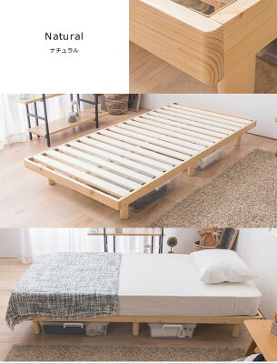天然木無垢材の雰囲気そのままナチュラルテイストベッド 飾らないお部屋に溶け込むプレーンなデザイン 簡単に2段階高さ調整ができる ボルト付きの脚 ラグも収納ケースも収まるベッド下スペース 通気性抜群効率良く湿気を逃がす快適すのこベッド 耐荷重200kgのしっかりフレーム布団も使える安心強度 並べて広がるフラットベッドキングサイズも思いのままに 安心して使える嬉しい細やかな心配り すのこベッドシングル/高さ2段階調節シングル/木棚付きシングル/コンセント付きセミダブル/高さ2段階調節セミダブル/木棚付きセミダブル/コンセント付きダブル/高さ2段階調節シングル/コンセント・ 照明付き