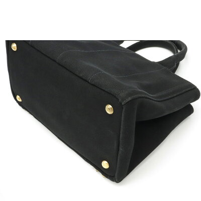【先着順!最大5万円OFFクーポン!】【バッグ】PRADA プラダ CANAPA カナパ ハンドバッグ 2WAY ショルダー ビジュー スタッズ キャンバス NERO ブラック 黒 国内ブティック購入品 1BG439 【中古】