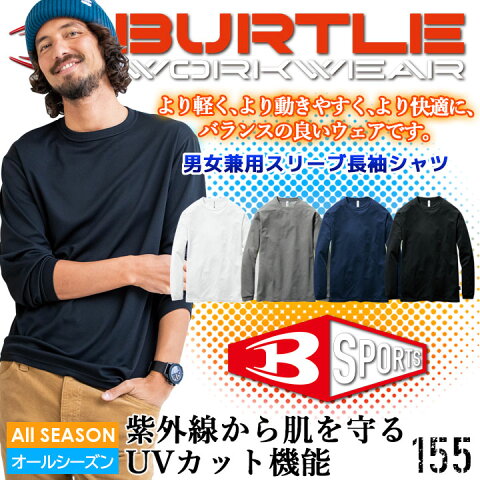 バートル インナー 長袖シャツ 吸汗 速乾 155 男女兼用 メンズ レディース Tシャツ エコ ストレッチ 吸汗速乾加工 UVカット オールシーズン 作業着 作業服 ユニフォーム 制服 BURTLE