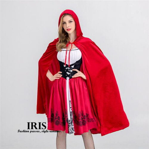 ハロウィン衣装 赤ずきん コスチューム 変装 レディース コスプレ衣装 大きいサイズ ワンピース ドレス ミディアム丈 膝丈 仮装 女の子 レッド ブラック 大人用 送料無料【IRIS】S M L XL 2XL 3XL
