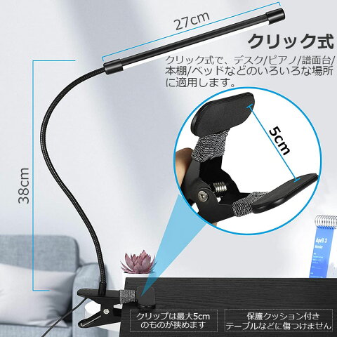 【どこでも使用可能】クリップ式のライト、デスク/ピアノ/譜面台/本棚/ベッドなどのいろいろなところに容易に固定することができて、使用便利です。