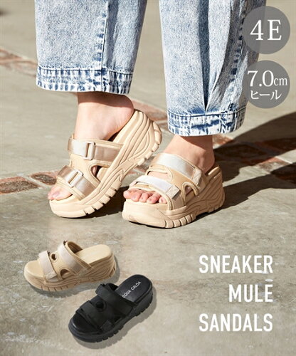 靴 シューズ ゆったり幅広 厚底スニーカーミュールサンダル 低反発中敷 ワイズ4E ニッセン nissen