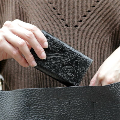 【10%OFF+ポイント10倍 9/11 01:59まで】栃木レザー カードケース 名刺入れ メンズ レディース 日本製 本革 ペイズリー 柄 VINCENT CRAFTED ヴィンセントクラフテッド カードケース 名刺入れ JOHAN ビジネス 名刺ケース ブラック クリスマス